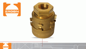 Screw nut TR90X8 with safety system and hose addition with external thread G6/4. Thanks to the safety system(key/keyhole) on the screw nut the nut can be tightened only on the flange provided for the same liquid gas. The screw nut contains little balls which enable turning of the hose connection. The screw nut and the hose connection are made of brass and the balls are made of stainless steel. It is used in liquid gas intake ducts.