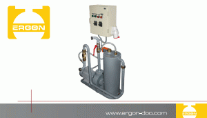This device is used when tanks are placed at different hights up to ◬h=50m. These pumps have capacity of up to 10m3/h.They are often used for quick transfer of oil in barrels and for filling containers or accumulators placed at bigger heights. The command cabinet provides the same direction of electric motor turns, dry- running protection, automatic turning off of the pump after the transfer , bimetallic electric motor protection.